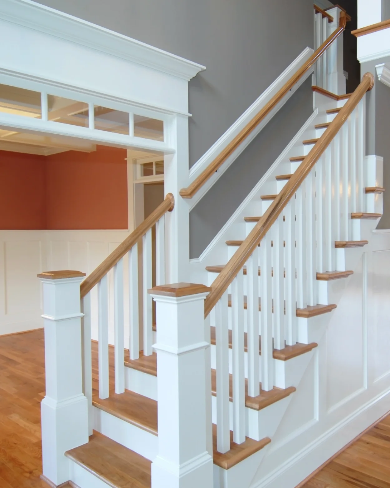 Many staircase projects naturally extend into hallways, landings, and main-floor spaces.